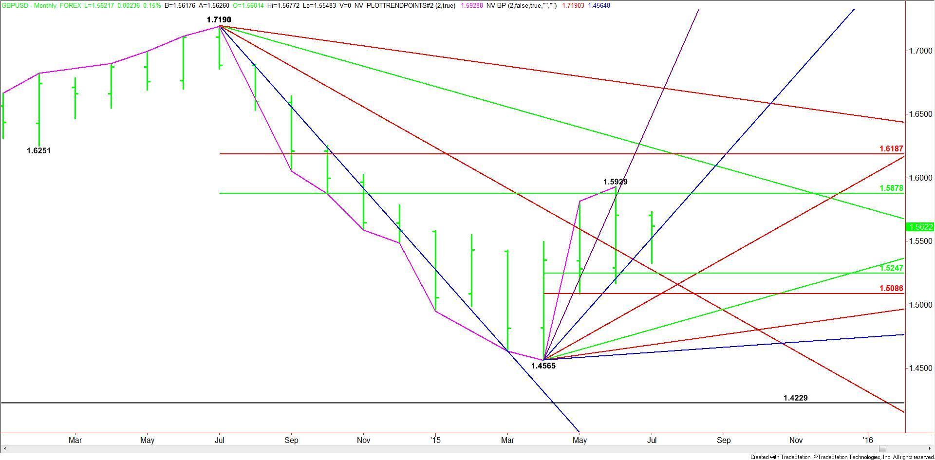 Technically, the main trend is down according to the monthly swing chart. The main range is 1.7190 to 1.4565. Its retracement zone at 1.5878 to 1.6187 is the primary upside target of the current rally. In June, this zone stopped the rally at 1.5929.