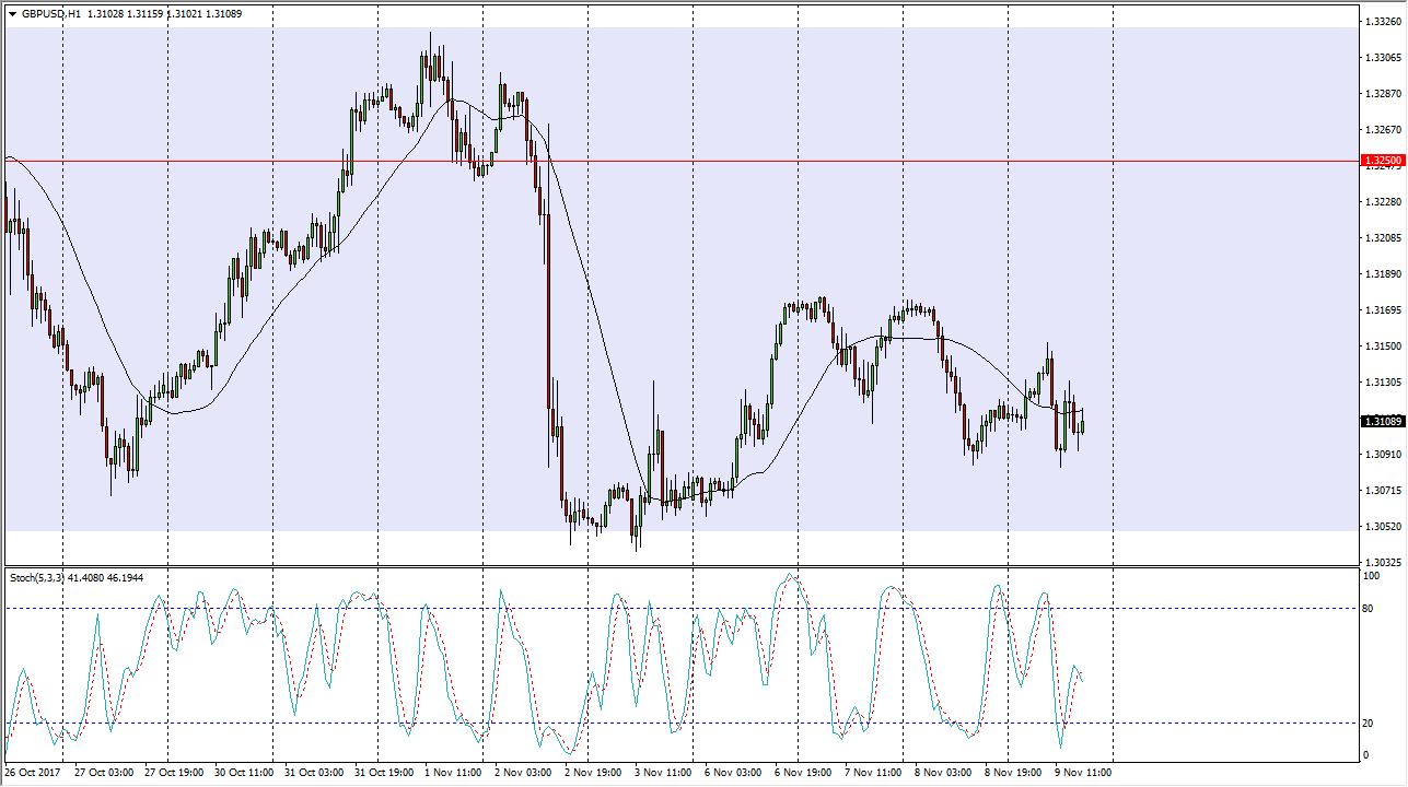 The British pound was choppy on Thursday, as we continue to consolidate in general. We are in a larger consolidation area, which extends down to roughly 1.3050, but is also supported by the 1.30 level underneath, as it is the intersection of both horizontal support, and an uptrend line that has been reasonably important over the last several weeks. I believe that the top of the area is closer to the 1.3333 level, and is very likely to offer a significant amount of resistance. Because of the action that we have seen recently, I have been looking at the stochastic oscillator, as it gives me an idea as to when we are overbought or oversold. In these range bound type of markets, it’s easy to see how you can get chopped up if you do not continue to play “small.” By waiting for a longer-term move, you can make large profits over the longer term, but I believe that this pair is going to continue to be very sideways for the near term.