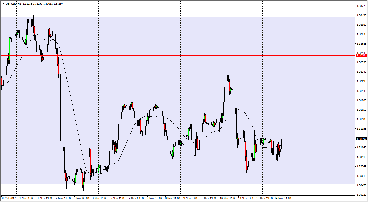 The British pound went sideways during the trading session on Tuesday, as the 1.3050 level underneath should offer support. I believe that the market will eventually rally, as we have been consolidating for some time. Because of this, I’m a buyer of the British pound, but for short-term trades only. We did gap down at the open on Monday, and we should go looking to fill that gap given enough time. I think that the market is going to continue to be very noisy, because there are a lot of issues involving the United Kingdom and of course the United States as well. The US Congress not been able to pass tax reform has worked against the value of the dollar, but at the same time Teresa May has several issues when it comes to confidence in her own party. With this, I think that this market will continue to chop around in this area, but as we are closer to the bottom of the area, it makes sense that the buyers will come in and try to push this market towards the fair value level.