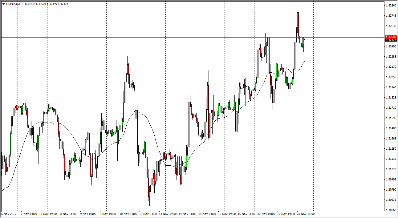 The British pound initially fell during Monday, but then sliced through the 1.3250 level early in trading. We pulled back a bit, testing that area for