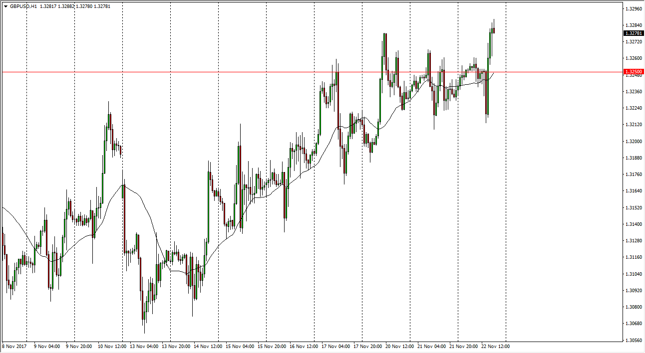 The British pound was very volatile during the trading session on Wednesday, as we initially tried to break above the 1.3250 level, but then pulled back to the 1.32 handle. At that point, the market shot through the 1.35 level cleanly, and now looks set to go much higher. Now that we have broken above this level, I believe that we are going to go looking towards the 1.35 level over the next several sessions. With the Thanksgiving holiday today, it’s likely that the US dollar will be somewhat undefended, and therefore it’s likely that the British pound can continue the bullish pressure. I also recognize that the uncertainty around the British economy leaving the European Union does put a little bit of an anchor around the neck of the pound, but longer-term I don’t see a reason as to why this market won’t go looking towards the 1.365 level again, which is the recent high.