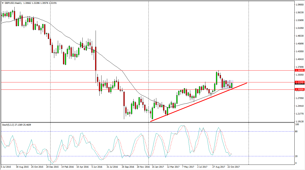 The British pound rallied during the week, reaching towards the 1.3250 level, an area that has been important several times over. We also have agreed with the uptrend line, and that is a positive sign indeed. However, the previous candle on the weekly chart was a shooting star, so I think we need to break above that level to start going higher. That also coincides with a breakout of minor consolidation, so overall that should leave the British pound towards the 1.3650 level above. Adding more speculation to the idea of a strengthening British pound is that the stochastic oscillator is starting to cross in the oversold region.