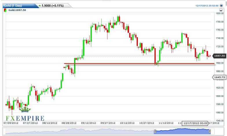 The gold markets did almost nothing during the session on Monday, gaining just 0.15%. The market presently is hovering right around the $1700 level, so we