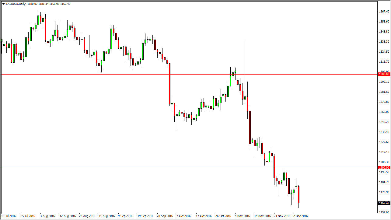 Gold markets fell on Monday, after initially trying to rally at the open. A turnaround against the initial move continues the longer-term downtrend. The market seems to be testing the $1150 level below, and quite frankly I feel that every time we rally the sellers will come back as the real support can be found down at the $1100 level. Because of this, I look at short-term charts for an opportunity to sell again and again. I think that buying gold is all but impossible at this point, and quite frankly I would not be overly surprised if we reach the $1000 level longer term.
