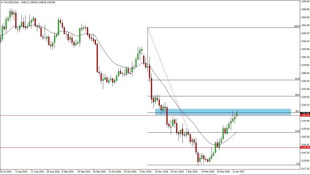 Gold markets tried to rally on Monday, but found a bit of resistance just above current levels. By doing so, it looks as if the 38.2% Fibonacci