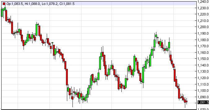 Looking at this chart, we do recognize that we could rally from here, and perhaps even gain quite significantly due to the fact that this area has been so supportive in the past. Any rally at this point in time would have to be looked at with suspicion though, because the US dollar is strengthening overall. A strengthening US dollar typically means lower gold prices, although the correlation isn’t necessarily one-to-one. That being the case, it is simply thought of as a secondary indication of where the market may go. Any rally at this point in time will more than likely find plenty of resistance at the $1100 level, and then of course the $11,020 level.