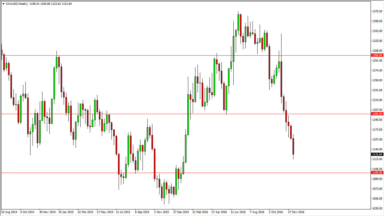 The gold markets had a negative week, as we have sliced through the $1150 level. Any time we rally at this point there should be selling pressure given