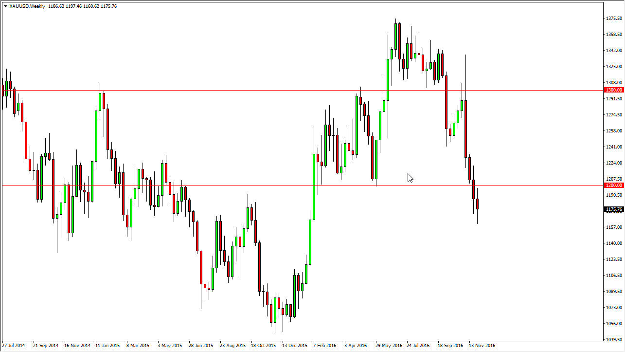The gold markets went back and forth during the week, testing the 1160 level on the bottom, and the 1200 level on the top. Ultimately, we ended up forming