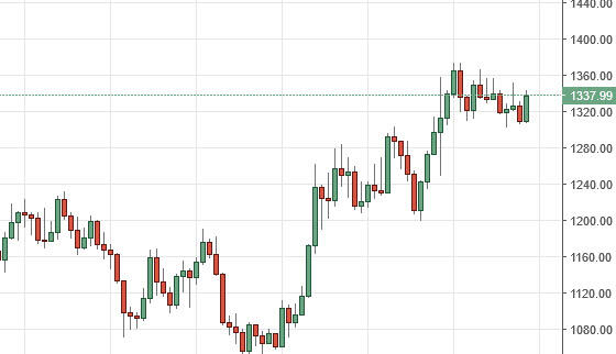 Gold markets rose during the course of the week, breaking above the $1330 level. The fact that we saw bullish pressure isn’t necessarily a surprise, as