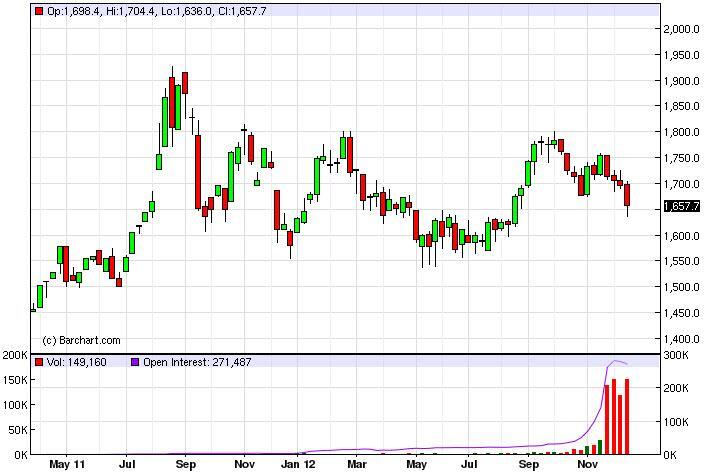 Gold Futures forecast for the week of December 24, 2012, Technical