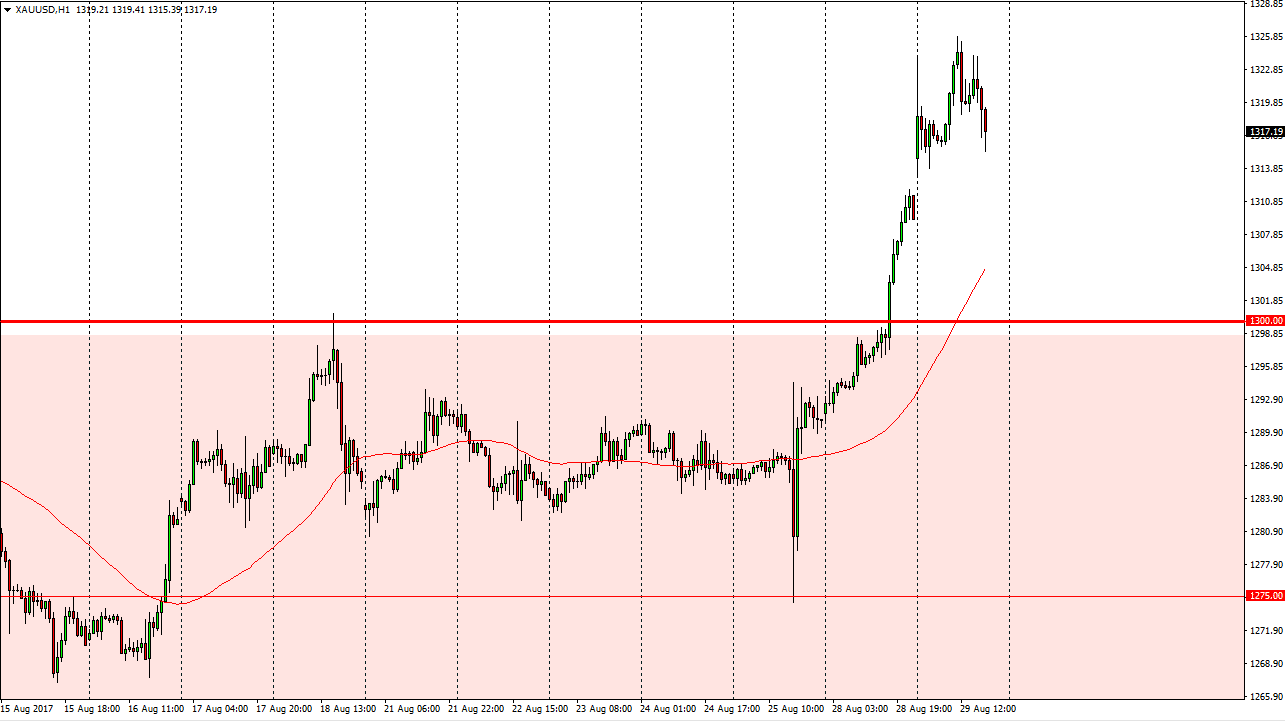 Gold markets gapped higher at the open on Tuesday, and then shot towards the $1325 level. We pulled back since then but it seems as if we are financing