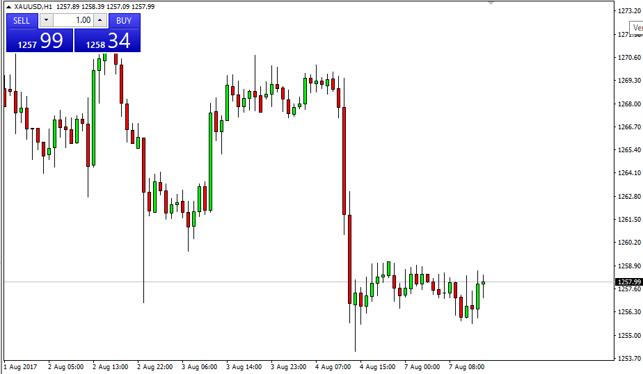Gold markets continue to grind sideways after the massive selloff on Friday. I believe that the market is essentially treading water above the 1255