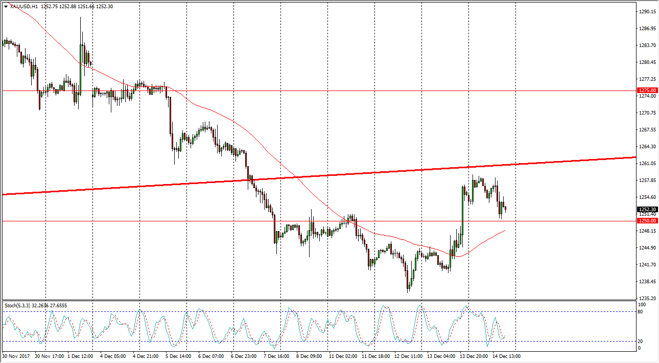 Gold markets as you can see pulled back slightly during the trading session on Thursday, but the $1250 level looks to be very supportive. I think eventually we could build up enough momentum to go higher, but right now market seem to be needing to build up the momentum slowly. Because of this, I think that eventually we go looking towards the $1275 level, and that eventually the $1300 level after that. Alternately, if we break down below the $1240 level, the market should then go to the $1225 level, and that eventually the $1200 level. I think gold markets continue to be very volatile, based upon interest rate outlook of several central bank around the world.