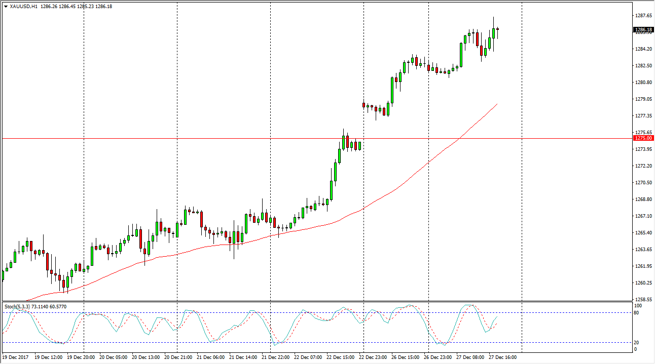 Gold markets of course were volatile during the thin trading session on Wednesday, with an upward slant. Because of this, looks as if we are going to continue to see buyers jumping into the marketplace.