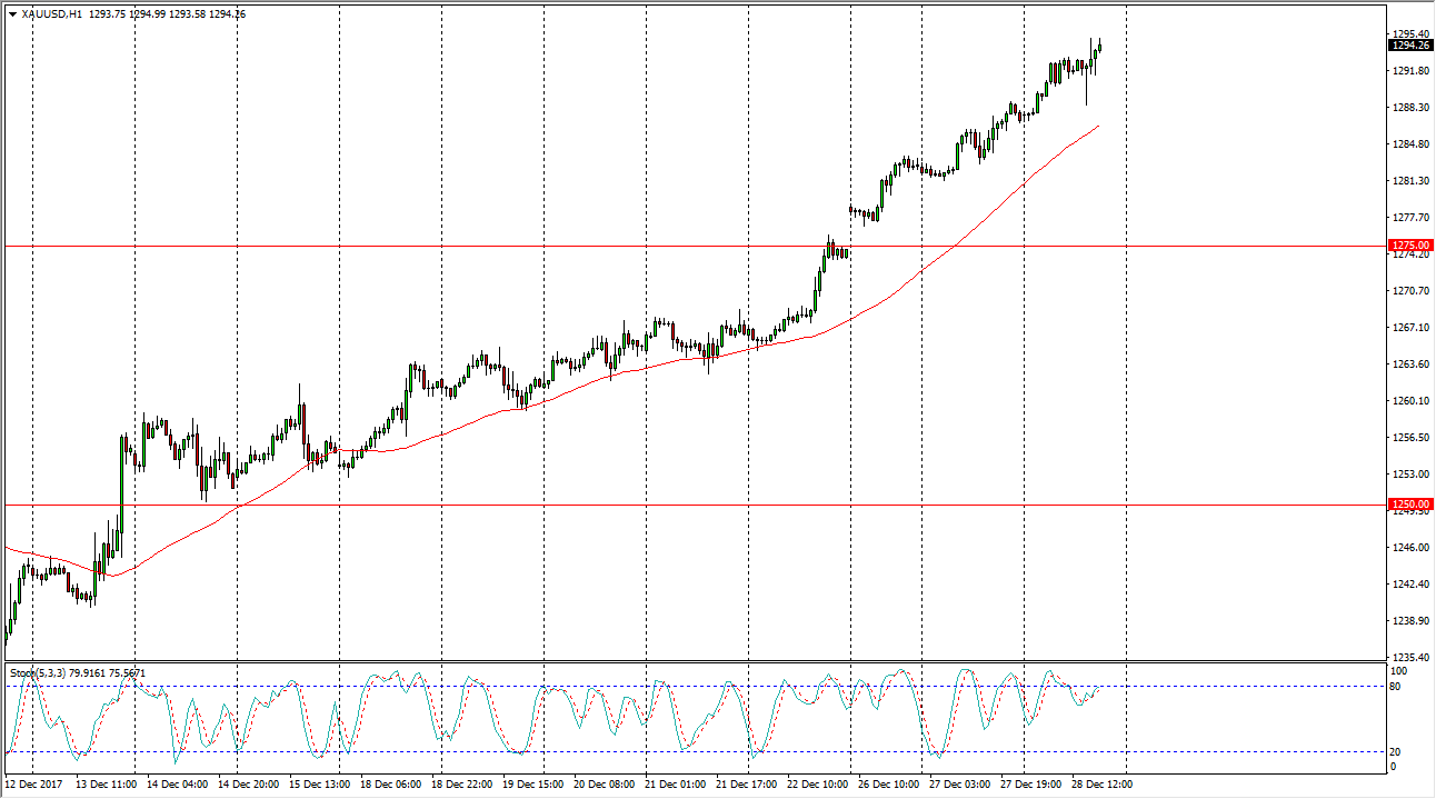 Gold markets have been very bullish of the last several sessions, gapping 3 days ago above the $1275 level. By doing so, it has put a bit of a “floor” in the market at that level, and I think it’s only a matter of time before the gold markets reach towards the vinyl $1300 level. A break above there should send this market much higher, but I think in the short term the $1300 level will probably offer resistance. Breaking above there is a very bullish sign, and could send this market as high as the $1325 level. I think once the traders get back from holiday, we will probably see more volume jump into the marketplace, and continue to go in the favor of gold itself.