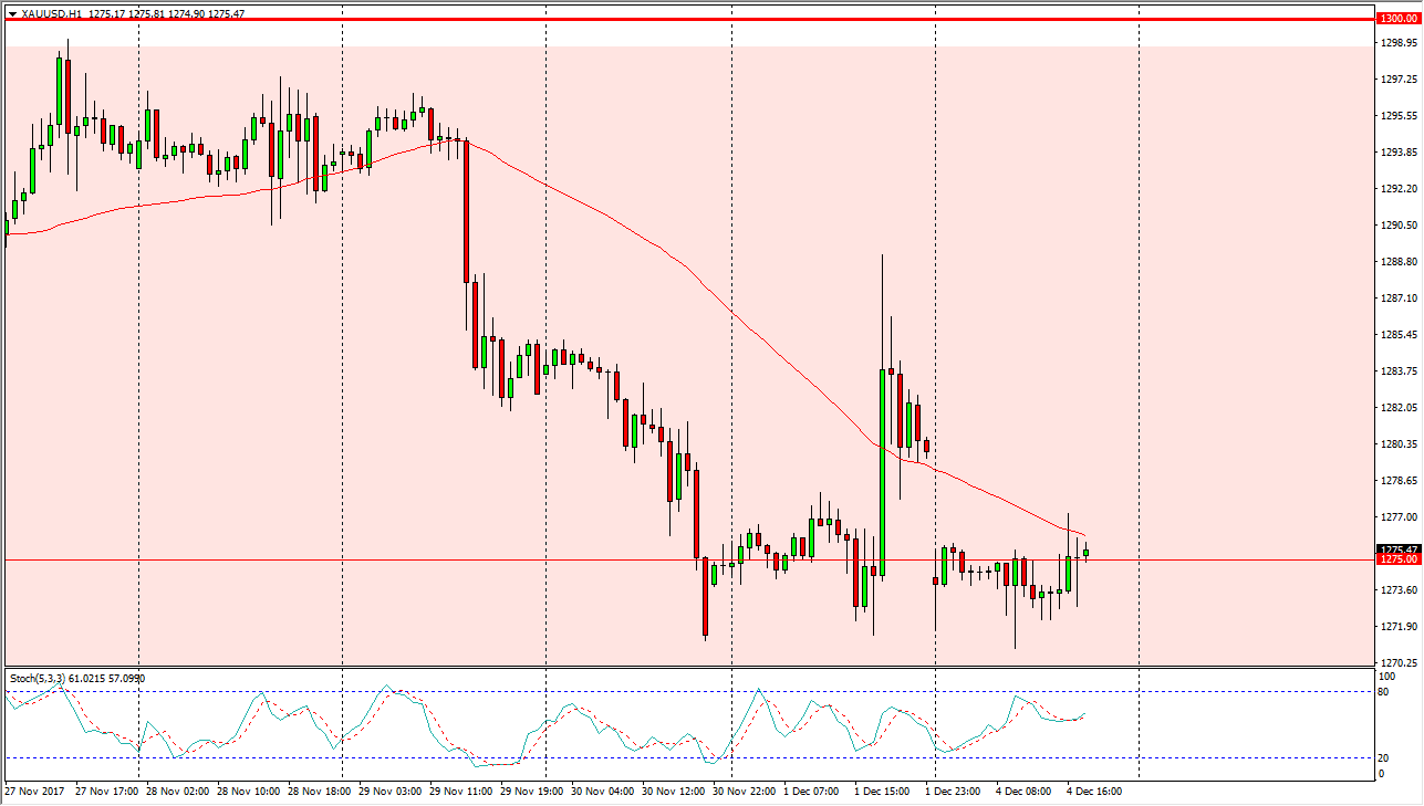 Gold markets gapped lower at the open on Monday, as we continue to hover around the $1275 level. This is an area that has attracted a lot of attention, so it will be interesting to see what happens over the next couple of days.