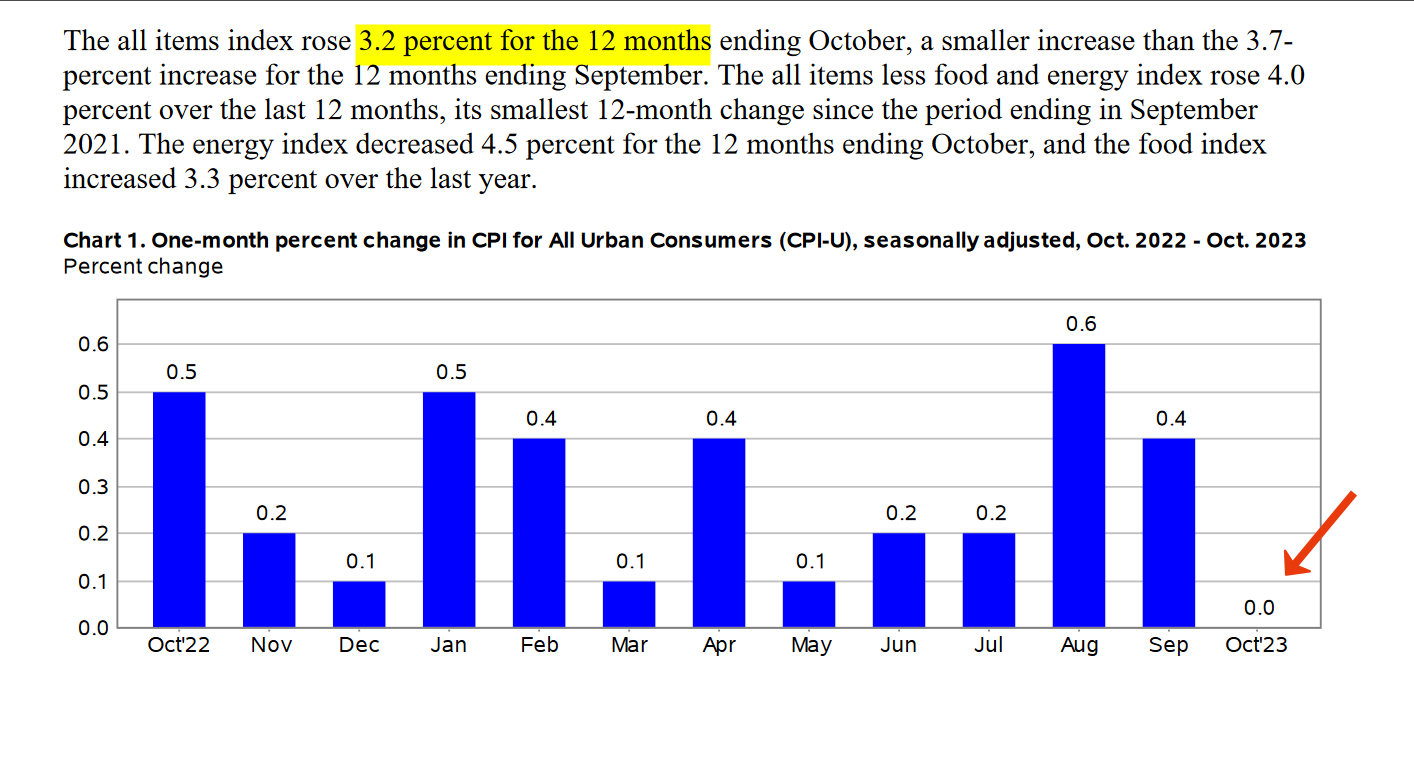 Consumer Price Inflation was 0.0% in October, largely due to lower energy prices. Overall, I think the economy is rolling over into a recession faster than most expect.