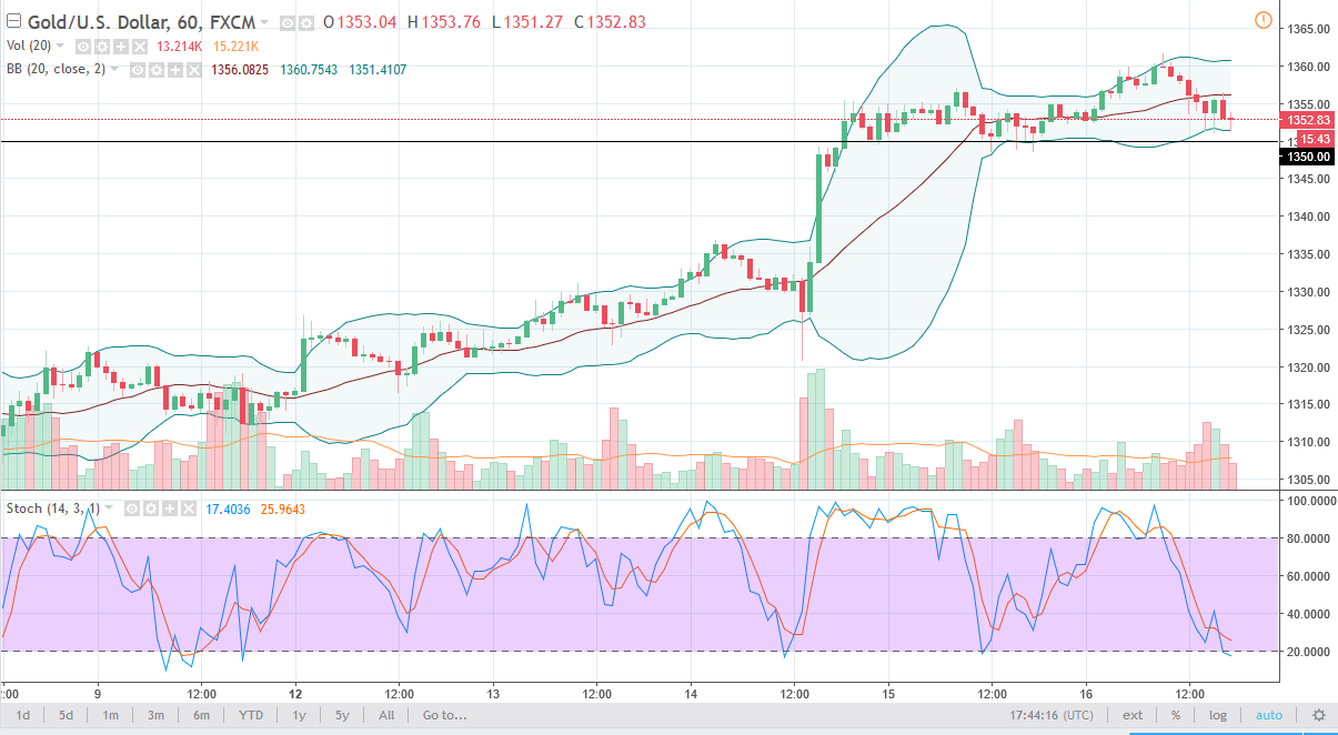 Gold markets fell slightly during the trading session on Friday, reaching towards the $1350 level. That’s an area that should continue to attract a lot of attention as it has in the past, as the market could be entering a momentum building phase.