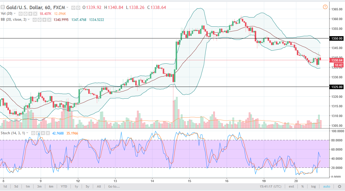 Gold markets have fallen a bit during the day on Tuesday, reaching down towards the $1350 level. I think there is support extending down to the $1325 level, so this in the end, should be a nice buying opportunity.