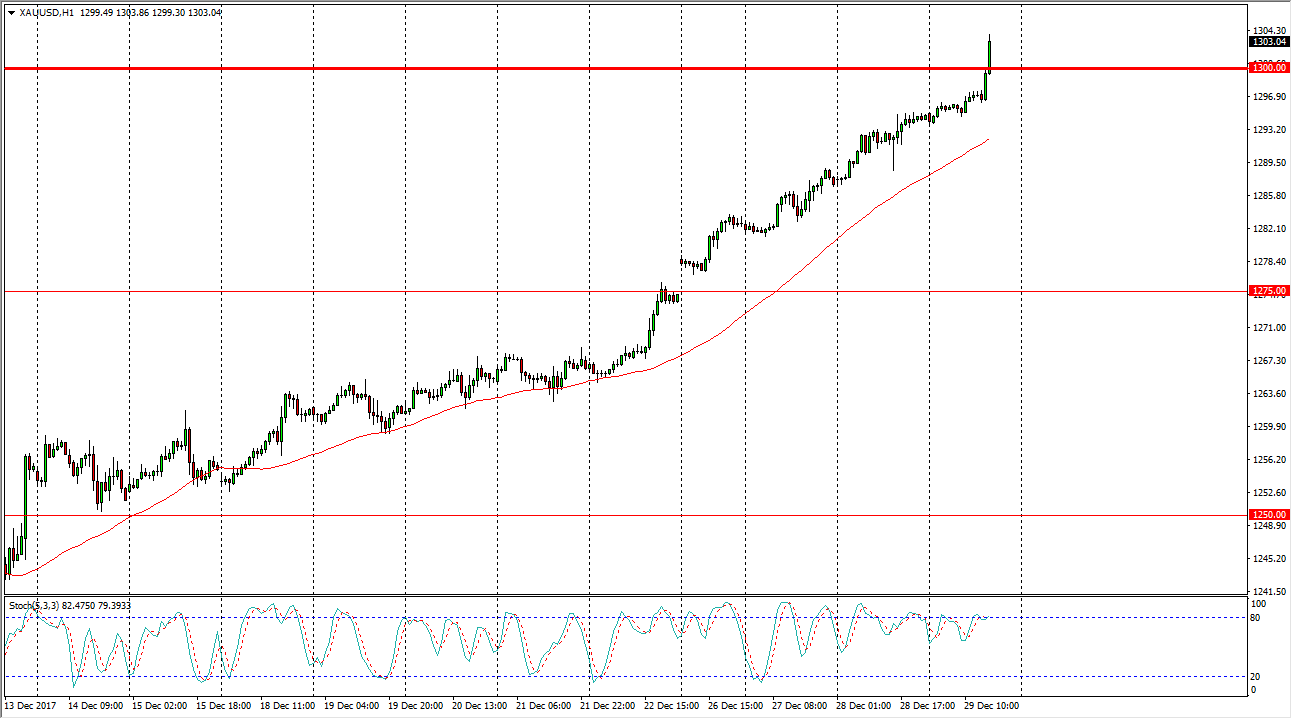 Gold markets broke out during the trading session on Friday, slicing through a massive barrier at the $1300 level. Ultimately, this is a market that looks like it is ready to go too much higher levels this year.