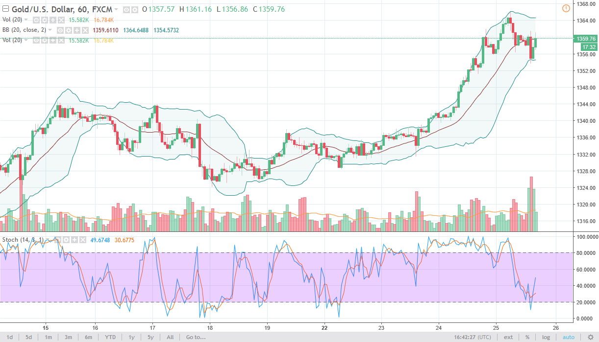 Gold markets went back and forth during the trading session on Thursday, as we continue to see a lot of noise in the precious metals markets. I believe that the US dollar falling continues to help this market though, and it’s only a matter of time before the break out to the upside. Above, the $1400 level looms large.