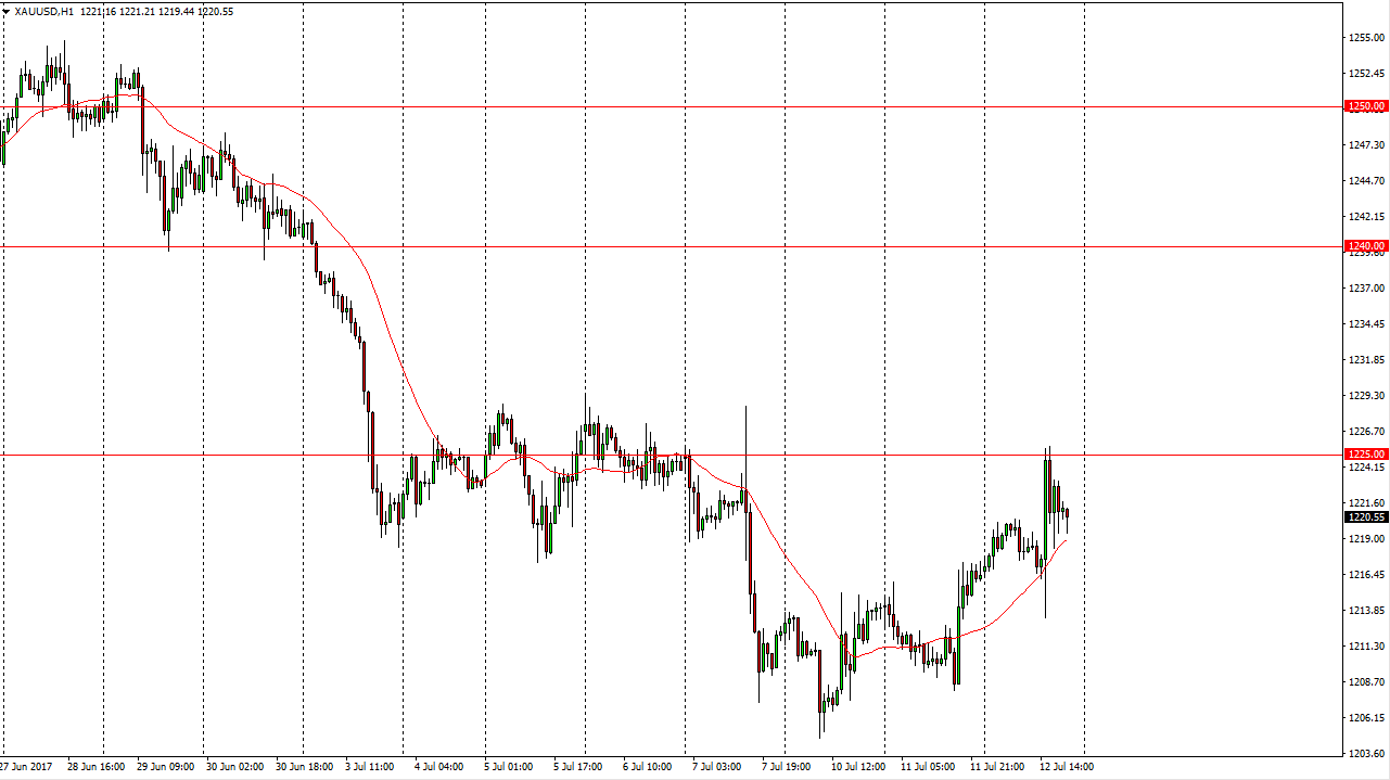 Gold markets initially spiked to the upside, slamming into the $1225 level. The market turned around though, and it now looks as if gold is going to