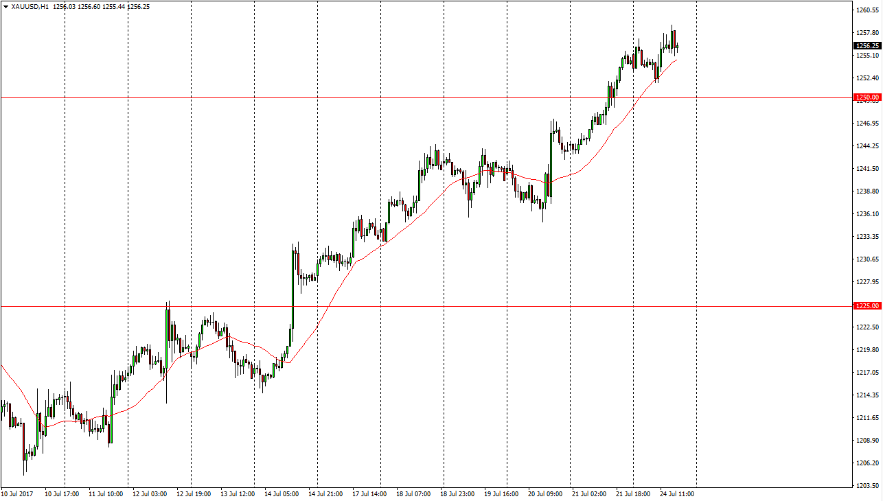 Dips should continue to offer value, and I believe that it is not until we break down below the $1250 level that the idea of the uptrend turning around can even be remotely entertained. Quite frankly, even that isn’t necessarily a reason to start selling, and I believe that gold will continue to try to rally, perhaps aiming for the $1260 level and the short-term, and then longer-term looking for the $1280 level above which is a much more interesting level on longer-term charts. That’s not to say that it will be an easy trade to take, and certainly volatility will be part of the gold market, but it certainly looks as if the buyers are in control and I certainly wouldn’t want to go against that type of bullish trend.