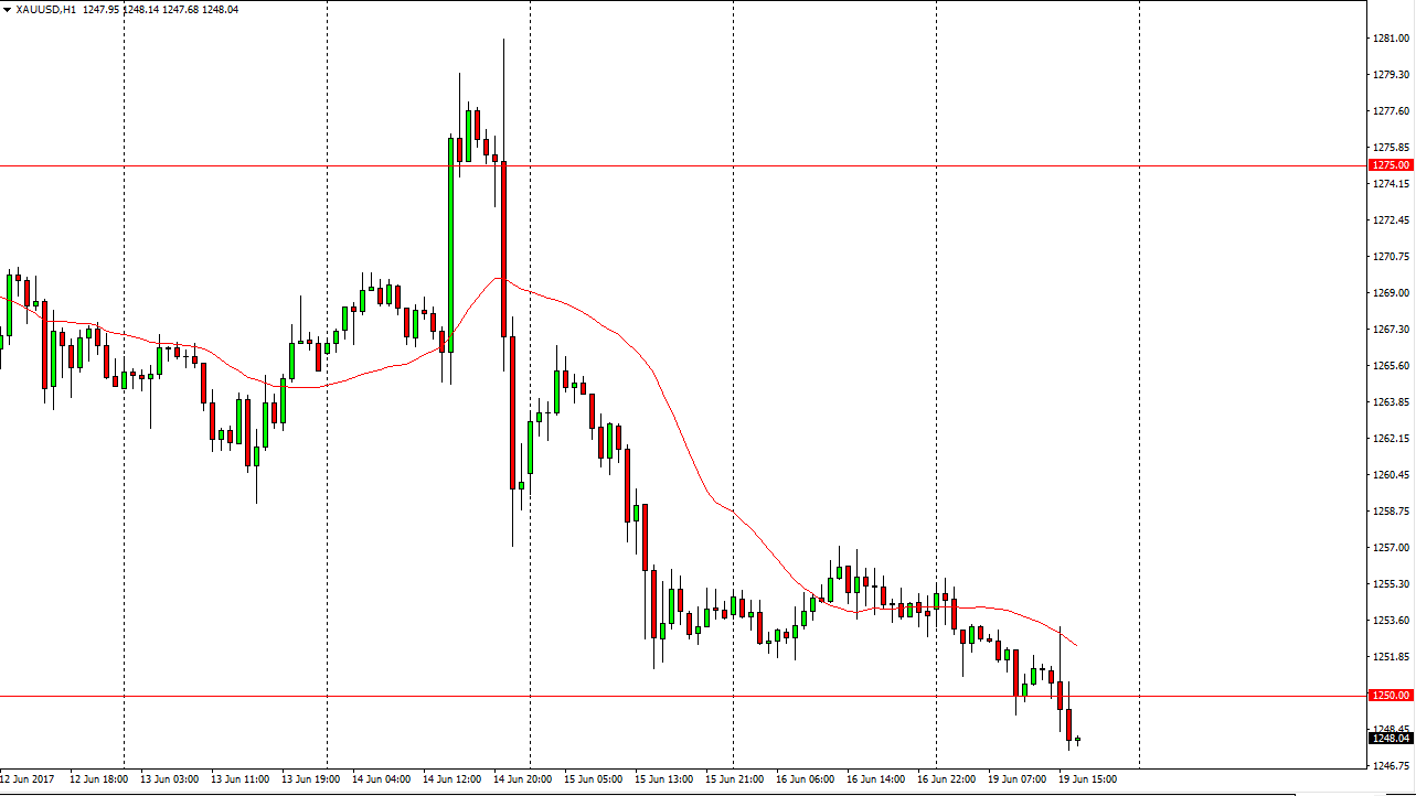 Gold markets fell during the session on Monday, breaking below the $1250 level. That is a significant psychological number, and the fact that we have