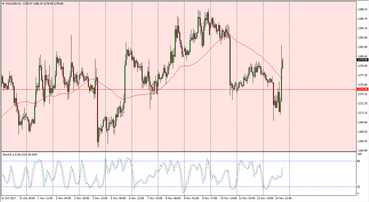 Gold markets initially fell during the Wednesday trading session, falling towards the $1270 level underneath. The market looks likely to find plenty of reason to go back and forth, as the US dollar has been very noisy in general. By bouncing the way it has, it looks like we go towards the $1290 level above, which is major resistance that extends to the $1300 handle. Enough time, I believe that the buyers will continue to be interested in this market on dips, as there are a lot of uncertainties when it comes to the U.S. Congress being able to pass tax reform. This has weighed upon the US dollar, and with the EUR/USD pair breaking above the 1.17 level again, it’s likely that this market will continue to punish the US dollar.
