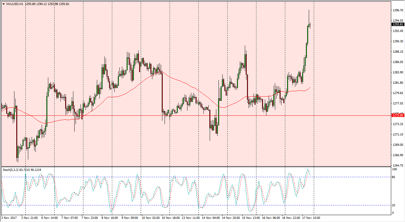 Gold markets went sideways initially during the day on Friday, and then exploded to the upside, breaking above the $1290 level. However, it looks as if