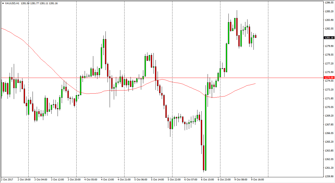 There are a lot of ways to play this move, for example selling a vertical put spread in the options market. That’s what I have done, but you can also play the GLD ETF, trade the CFD market, and of course trade the futures markets. The Australian dollar could get a bit of a boost from the gold market as well, which is a proxy way for currency players to get involved in the gold markets, but there are a lot of other issues there. Ultimately, if we can stay above the $1275 level, I think this will have a bit of a “knock on effect” in various other markets. Alternately, if we were to break down below the $1275 level, I think we will probably go looking towards the $1260 level underneath. The gold markets tend to be very choppy, but are sensitive to geopolitical concerns. There are a lot of issues, not just and North Korea, but in places such as Turkey and Spain that could cause more upward pressure as gold could be bought as a bit of a safe haven.