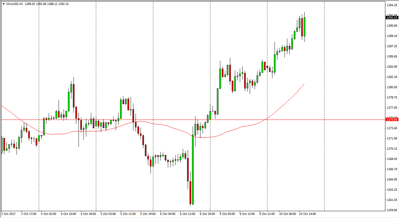 Gold markets rallied during the day on Tuesday, reaching towards the $1290 level. At this point, looks as if gold is going to continue to go higher,