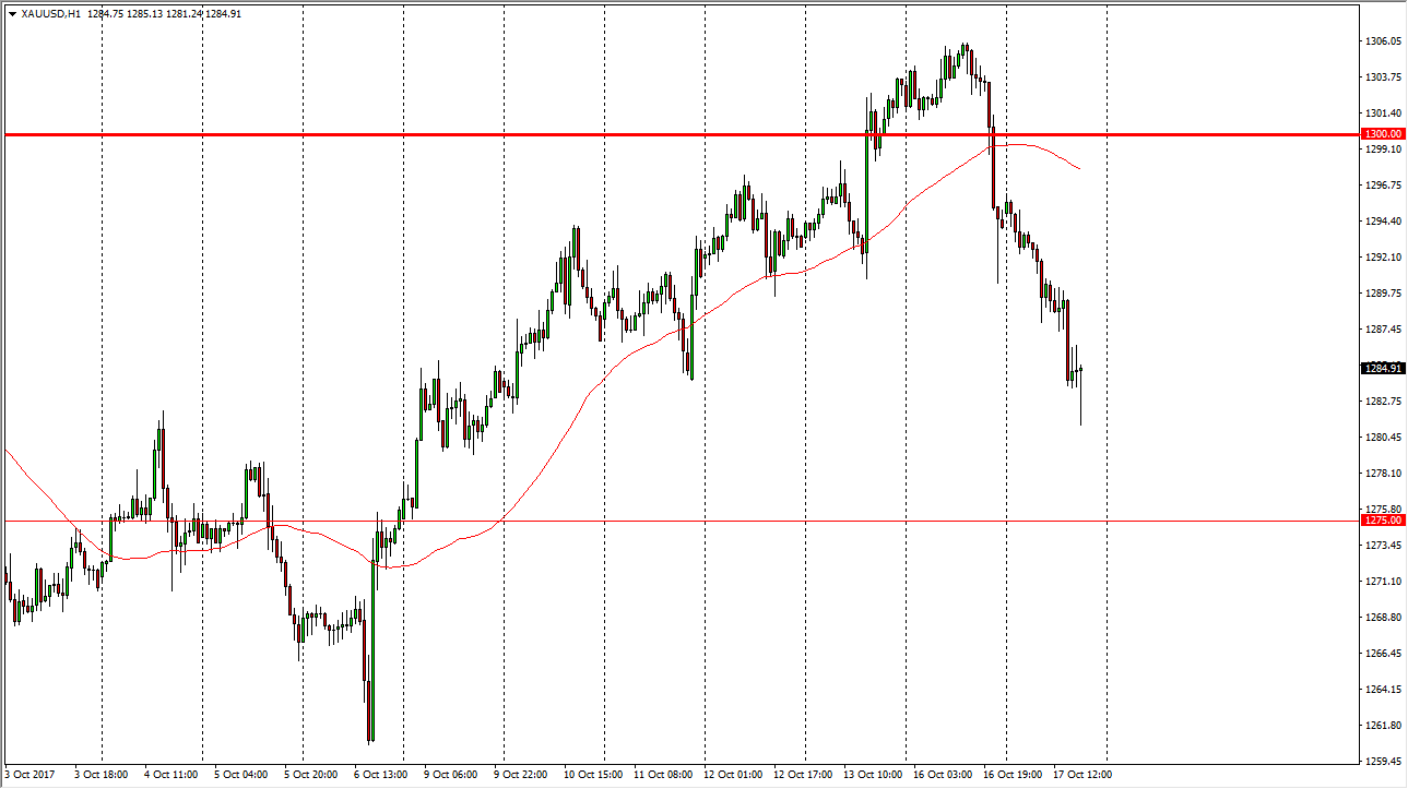 Gold markets initially fell during the day on Tuesday, slicing through the $1285 level. This is a very negative sign obviously, and I think that although we are starting to see a little bit of support, bearish pressure is probably going to continue. I recognize that the $1275 level underneath will probably be even more supportive, so I think the downside damages mostly done at this point. Having said that, I would not jump back into this market place until we get some type of supportive daily candle, as the gold markets have been hit rather hard. Remember that the $1300 level is important, and the fact that it has turned out to be rather resistive and resilient with that selling pressure suggests that we could continue to see a lot of noise in this market.