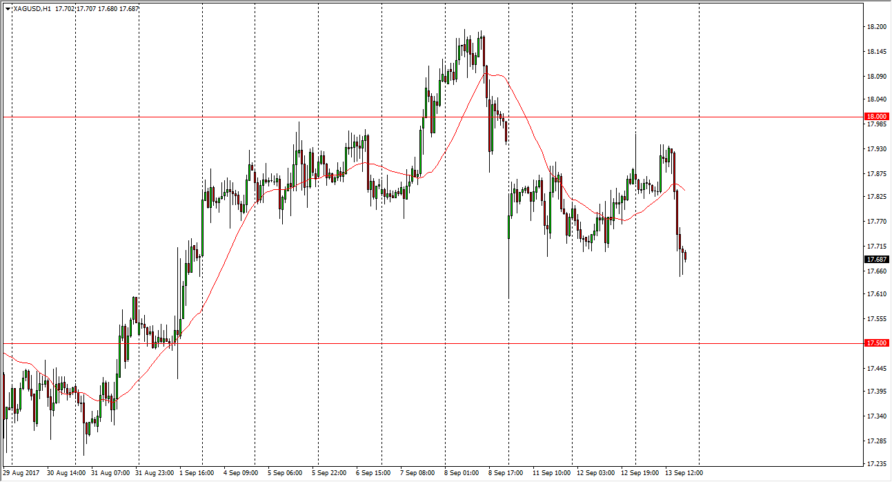 Gold markets fell significantly during the session on Wednesday as talk of a tax deal hit the wires. While we haven’t actually seen one, by breaking down below the bottom of the range for the previous session, this is a negative sign. The $1320 level has offered a little bit of support, but I think there is even more support below at the $1300 level. That being the case, I think that we may see a little bit more bearish pressure, as the US dollar could find itself gaining. However, I would anticipate that the $1300 level below will hold. Longer-term, we still have a gap from Monday that needs to be filled.