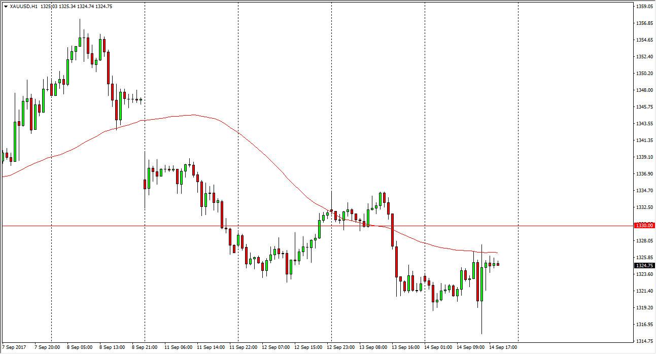 Gold markets were choppy over the course of the session on Thursday, as we continue to see resistance just above. I think that the market breaking above the 1003 and $35 level will be very positive, and perhaps trying to send the market to fill the gap above that formed at the beginning of the week. Alternately, the market could go down to the $1300 level, and a move below the $1315 level should send the market looking for that. Ultimately, this is a very choppy market, but it looks like the sellers have taken control.