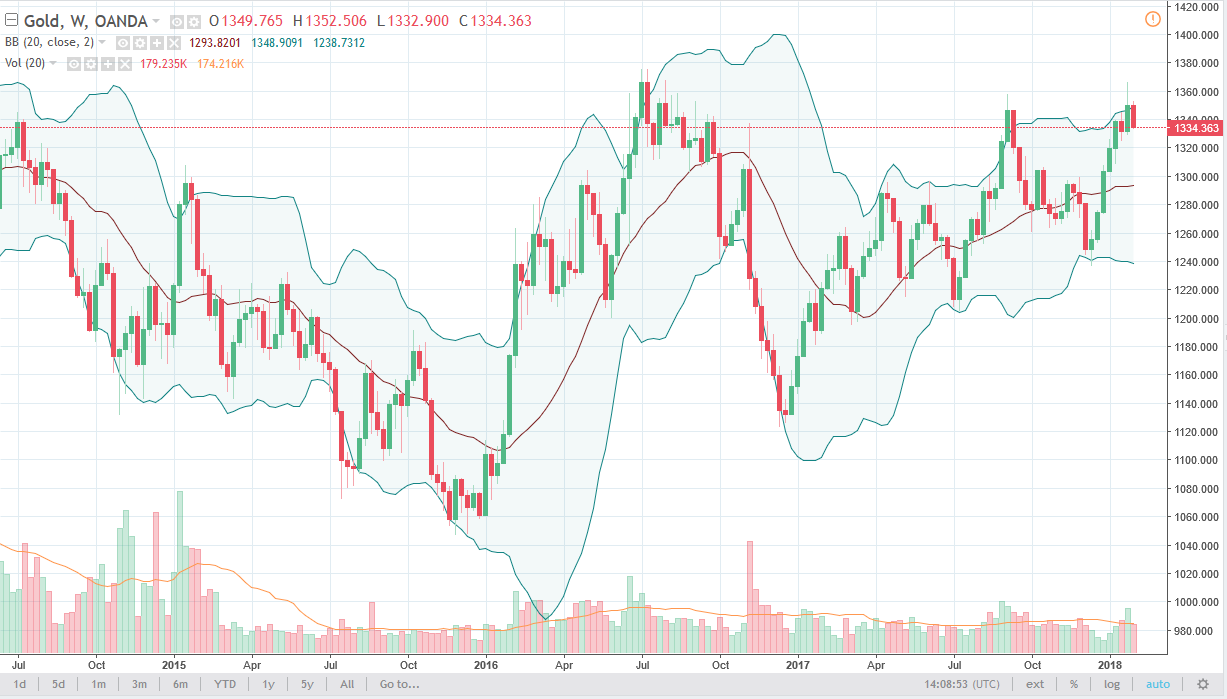 Gold markets continue to look bullish overall, but the last week was negative. Most of the negativity was found on Friday after the jobs number though, so I can’t put much emphasis on the negativity. I believe that the market is bullish for reason, as the US dollar has been pummeled. I think that continues to be the case for the rest of the year, but we may get a bit of a pullback in the short term. When you look at the weekly chart, it’s easy to see that we are in a bit of an up-trending channel, and more importantly: at the top of the channel. The market continues to look like it is attracting longer-term investors, because when you look at the last year, we have gradually risen. There is a significant amount of resistance just above at the $1375 level, and I think it leads to $1400. If we break above that level, the market goes much higher, perhaps reaching towards the $2000 level.