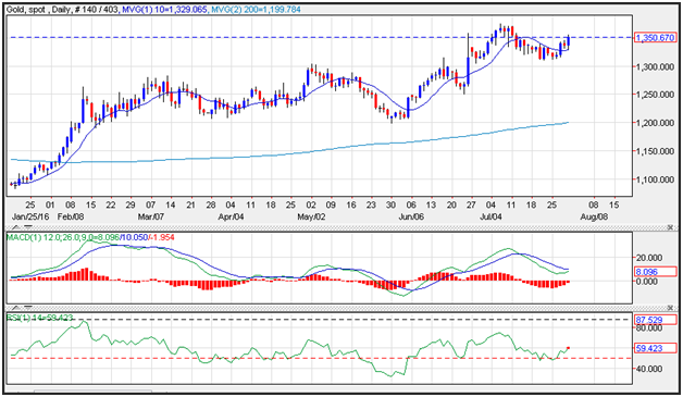 Gold prices gained traction following the better than expected Chicago PMI which was unable to buoy the greenback. The yellow metal found support near the