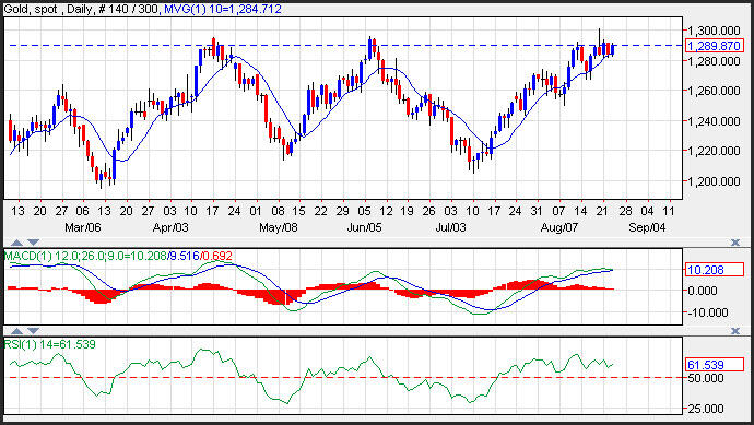 Gold prices moved higher testing resistance as Eurozone inflation appears to be on the mend. Prices tested the 1,292 level and are poised to test the August highs near 1,300. Support on the yellow metal is seen near the 10-day moving average at 1,284. Positive momentum is decelerating as the MACD (moving average convergence divergence) index is poised to generate a sell signal which the MACD histogram is printing in the red with a downward sloping trajectory which points to lower prices.