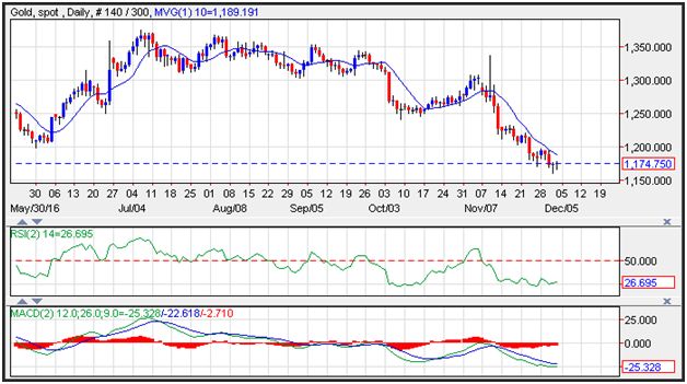 Gold prices consolidated holding support levels and unable to make a fresh low for December, as the dollar lost ground following a in line employment report released on Friday. Yields edged lower allowing the greenback to ease, paving the way for gold to edge higher. Resistance on the yellow metal is seen near the 10-day moving average at 1,189, while support is seen near the December lows at 1,160.