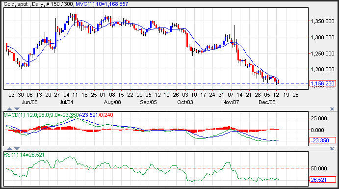Gold prices continued to move lower on Tuesday continuing to perpetuate the downtrend that is currently in place. Stronger than expected Chinese data lifted stocks pushing yields higher and allowing the dollar to generate headwinds for gold prices. Resistance is seen near the 10-day moving average at 1,168, while support is seen near the July 2015 lows at 1,076. Gold prices remain oversold as the RSI (Relative strength index) is printing a reading of 26.5, which is below the oversold trigger level of 30 and could foreshadow a correction.