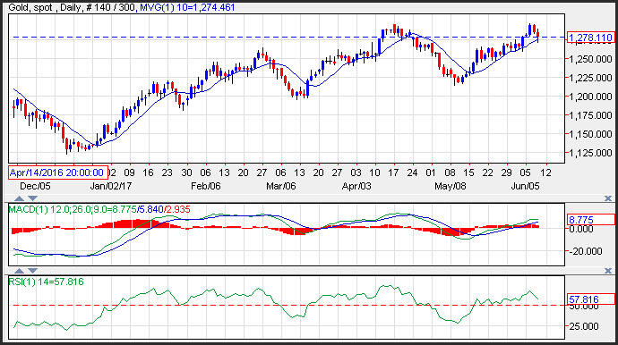 Gold prices move lower but rebounded off support seen near the 10-day moving average at 1,275. The dovish ECB commentary, helped the dollar gain