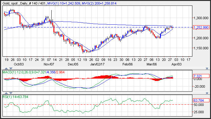 Gold prices edged higher despite a stronger greenback, as stronger than expected German import inflation kept prices of the yellow metal buoyed. Resistance is seen near the 200-day moving average at 1,258. Support is seen near the 10-day moving average at 1,242. Momentum remains positive as the MACD (moving average convergence divergence) index prints in the black with an upward sloping trajectory which points to higher prices.