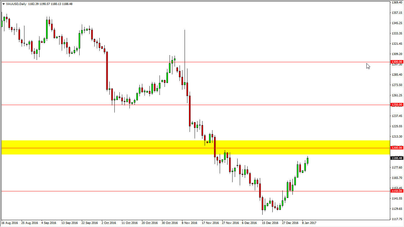 Gold markets rallied on Tuesday, approaching what I consider to be the “ceiling” of the market. The $1200 level should be resistive, and I of course have