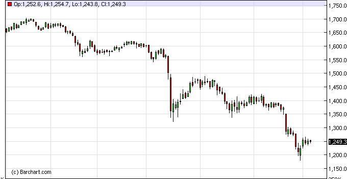 The gold markets fell slightly during the session on Thursday, as the Americans were away celebrating their Independence Day. That being the case, we still look of the market as hovering around the $1250 level, and as a result we need to see this market go higher and perhaps even close above $1300 in order to get bullish at this point. If we get above that level, we think that the $1350 level should be the next target. Long-term, we believe in the validity of a gold rally, but right now far too many things are working against the value of gold, and as a result we believe that we will bang around this general vicinity in order to build some type of base. If we do not, we feel very strongly that a massive amount of support is down at the $1000 level.