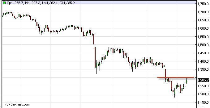 With this in mind, we clearly see that the $1650 level needs to be broken to the upside in order to go along for any length of time. We also see that the 1550 level is a bit of support, and would buy support of candles for a very short-term trade at that point it isn’t until we close on the daily chart below the 1500 level that we would consider selling for any length of time.