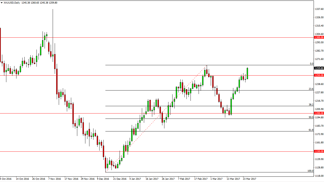 Gold markets rallied during the day on Monday, reaching towards the $1260 level. If we can break down to a fresh, new high, and up sensibly the $1265