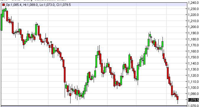 If we did break above the $1110 level, we feel that the market could have a relatively significant rally from there, but quite frankly we have been in a long-term downtrend, and although we had a nice rally this past fall, it looks like the sellers are most certainly still in control. The $1000 level below is our target, especially considering it was so resistive many years ago when we broke out and up for the longer-term move afterwards.