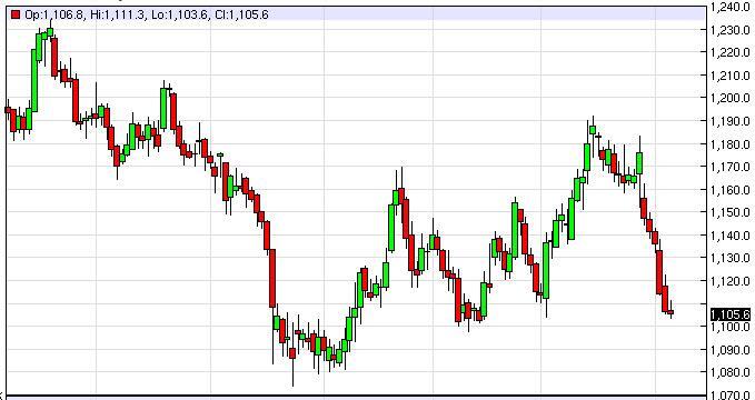Gold markets initially tried to rally during the course of the session on Thursday, but as you can see turned back around to form a shooting star. Because of this, it looks as if we are reaching towards the $1100 level, which of course was a massive supportive level previously. If we can break down below there, this market will probably grind its way down to the $1080 level. On the other hand, if we can break above the top of the shooting star, that could leave this market towards the $1140 level.