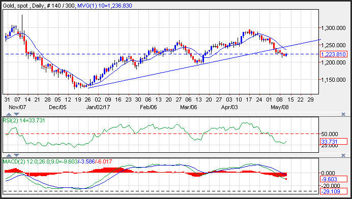 Gold prices edged higher on Thursday making a lower low and a higher high which is an outside day. The range was so small that it is hard to say that this outside day was a reversal, but it should be noted. Resistance on gold is seen near the 10-day moving average at 1,236. Support is seen near the March lows at 1,194. The BoE kept rates unchanged along with keeping the QE stable which help gold prices gain traction.