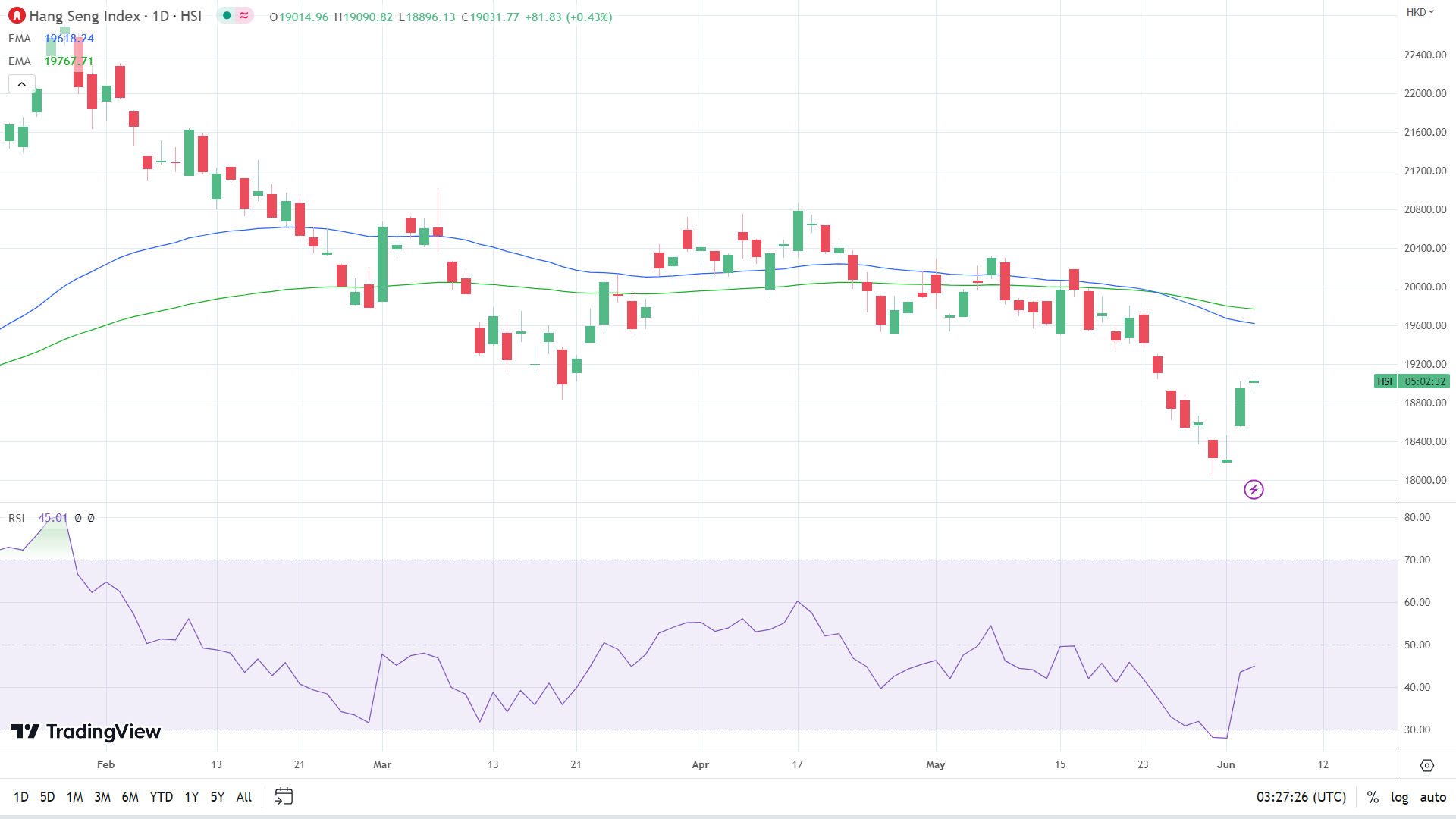 The Hang Seng was up 0.43% this morning.